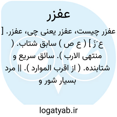 عفزر. [ ع َزَ ] ( ع ص ) سابق شتاب. ( منتهی الارب ). سائق سریع و شتابنده. ( از اقرب الموارد ). || مرد بسیار شور و غوغا در باطل. ( منتهی الارب ) ( از اقرب الموارد ).