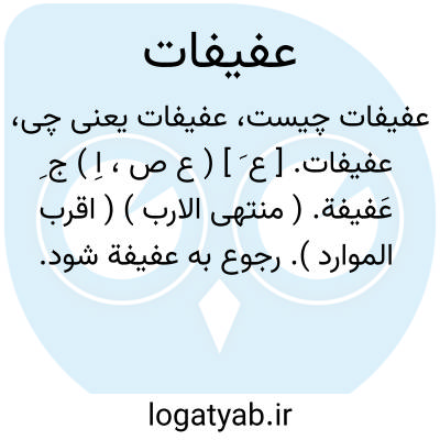 عفیفات. [ ع َ ] ( ع ص، اِ ) ج ِ عَفیفة. ( منتهی الارب ) ( اقرب الموارد ). رجوع به عفیفة شود.