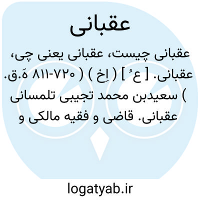 عقبانی. [ ع ُ ] ( اِخ ) ( 720-811 هَ.ق. ) سعیدبن محمد تجیبی تلمسانی عقبانی. قاضی و فقیه مالکی و از اهالی تلمسان بود و مدتی عهده دار قضاء در بجایه و مراکش بوده است. او راست: شرح جمل خونجی. العقیدة البرهانیة. شرح الحوفیة. ( از الاعلام زرکلی ).