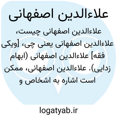 [ویکی فقه] علاءالدین اصفهانی (ابهام زدایی). علاءالدین اصفهانی، ممکن است اشاره به اشخاص و شخصیت های ذیل باشد: • سیدعلاءالدین بن محمدحسن مدرس اصفهانی، از فقها و علمای معاصر اصفهان• علاءالدین بن حسن سماعی اصفهانی، از دانشمندان قرن دهم هجری در اصفهان
