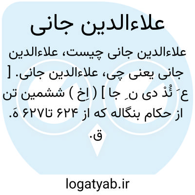 علاءالدین جانی. [ ع َ ئُدْ دی ن ِ جا ] ( اِخ ) ششمین تن از حکام بنگاله که از 624 تا627 هَ. ق. حکومت کرد. ( طبقات سلاطین اسلام ص 275 ).