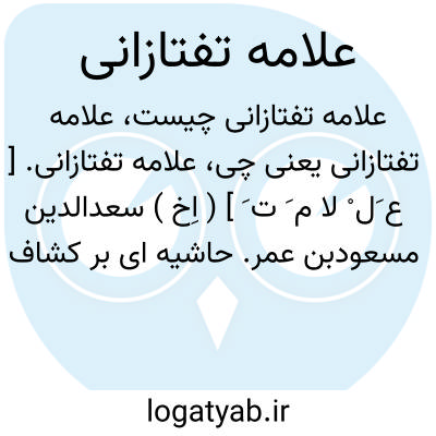 علامه تفتازانی. [ ع َل ْ لا م َ ت َ ] ( اِخ ) سعدالدین مسعودبن عمر. حاشیه ای بر کشاف زمخشری نوشته است، ولی آن را تمام نکرده و فقط تا سوره فتح نگاشته است ( متوفی در سال 792 هَ. ق. ). ( کشف الظنون ). ونیز او را آثار دیگری است. رجوع به تفتازانی شود.