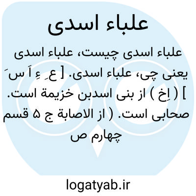 لغت نامه دهخدا علباء اسدی. [ ع ِ ءِ اَ س َ ] ( اِخ ) از بنی اسدبن خزیمة است. صحابی است. ( از الاصابة ج 5 قسم چهارم ص 172 ).