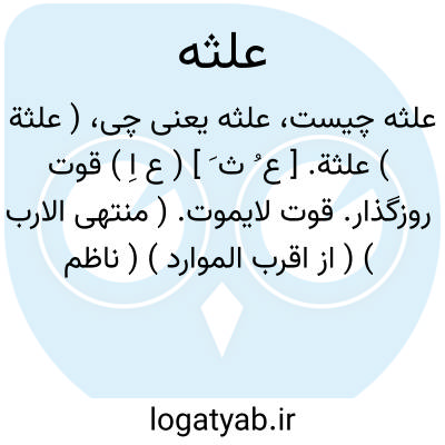 ( علثة ) علثة. [ ع ُ ث َ ] ( ع اِ ) قوت روزگذار. قوت لایموت. ( منتهی الارب ) ( از اقرب الموارد ) ( ناظم الاطباء ). بخورنمیر. || چیز کم. ( ناظم الاطباء ).