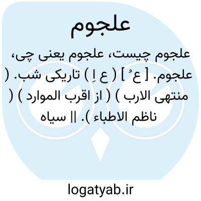 علجوم. [ ع ُ ] ( ع اِ ) تاریکی شب. ( منتهی الارب ) ( از اقرب الموارد ) ( ناظم الاطباء ). || سیاه پررنگ. ( از ذیل اقرب الموارد ). || باغ بسیاردرخت. ( منتهی الارب ) ( آنندراج )( ناظم الاطباء ). || باغی که درختان خرما بسیار داشته باشد. ( از اقرب الموارد ) ( ناظم الاطباء ). || بیشه و نیزار. ( از ذیل اقرب الموارد ) ( از المنجد ). || موج دریا. ( منتهی الارب ) ( از اقرب الموارد ) ( ناظم الاطباء ). || آب بسیار. || غوک و قورباغه نر. ( منتهی الارب ) ( از اقرب الموارد ). || کنه. || آهوی گندم گون. ( منتهی الارب ) ( از اقرب الموارد ) ( ناظم الاطباء ). || ماده آهوی خواستار گشنی. ( از ذیل اقرب الموارد ). || شترمرغ نر. || بط نر. ( منتهی الارب ) ( از اقرب الموارد ) ( ناظم الاطباء ). || قوچ. ( از اقرب الموارد ). || بز کوهی. || گاو نر کلان سال. ( منتهی الارب ) ( از اقرب الموارد ) ( ناظم الاطباء ). || ماده الاغ بسیارگوشت. || ماده شتر کلانسال. ( از ذیل اقرب الموارد ). || شتر سخت و توانا. || شتر برگزیده. ( منتهی الارب ) ( از اقرب الموارد ) ( ناظم الاطباء ). || نام مرغی سپید. ( منتهی الارب ) ( از اقرب الموارد ). || جماعت مردم. ( از ذیل اقرب الموارد ) ( از المنجد ). ج، عَلاجیم.