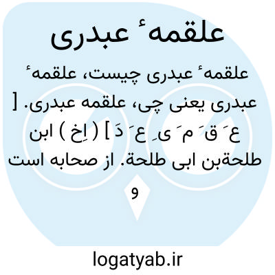 لغت نامه دهخدا علقمه عبدری. [ ع َ ق َ م َ ی ِ ع َ دَ ] ( اِخ ) ابن طلحةبن ابی طلحة. از صحابه است و در واقعه یرموک شهید شد. ( از الاصابة ج 4 قسم اول ص 264 ).