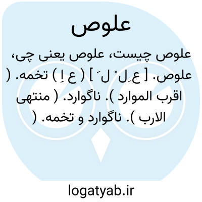 علوص. [ ع ِل ْ ل َ ] ( ع اِ ) تخمه. ( اقرب الموارد ). ناگوارد. ( منتهی الارب ). ناگوارد و تخمه. ( ناظم الاطباء ). تخمه و بشم. ( لسان العرب ). || درد شکم. ( منتهی الارب ) ( از اقرب الموارد ). علّوز و یا پیچیدن و لوی. ( از اقرب الموارد ) ( لسان العرب ).و رجوع به علّوز شود. || گرگ. ( از لسان العرب ) ( از اقرب الموارد ). این لغت گاه بصورت صفت نیزبه کار میرود و گفته میشود «رجل علوص »، بنابراین هم اسم است هم صفت. ( از لسان العرب ) ( اقرب الموارد ).