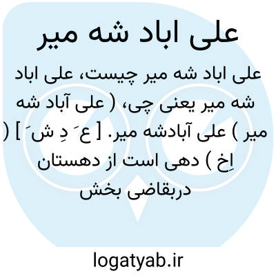 ( علی آباد شه میر ) علی آبادشه میر. [ ع َ دِ ش َ ] ( اِخ ) دهی است از دهستان دربقاضی بخش حومه شهرستان نیشابور واقع در 14 هزارگزی خاور نیشابور. ناحیه ای است جلگه و دارای آب و هوای معتدل، و 295 تن سکنه. آب آن از قنات تأمین میشود. محصول آن غلات است. اهالی به زراعت اشتغال دارند. راه آن مالرو است. ( از فرهنگ جغرافیایی ایران ج 9 ).