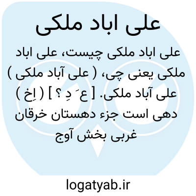 ( علی آباد ملکی ) علی آباد ملکی. [ ع َ دِ ؟ ] ( اِخ ) دهی است جزء دهستان خرقان غربی بخش آوج شهرستان قزوین واقع در 44 هزارگزی راه عمومی. ناحیه ای است کوهستانی و سردسیر، و دارای 716 تن سکنه. آب آن از قنات و از رودخانه خورخوره تأمین میشود. محصول آن غلات، سیب زمینی، بنشن، انگور، زردآلو و عسل است. اهالی به زراعت اشتغال دارند، و صنایع دستی آنان بافتن قالی و جاجیم است. راه آن مالرو است. ( از فرهنگ جغرافیایی ایران ج 1 ).