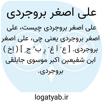 علی اصغر بروجردی. [ ع َ اَ غ َ رِ ب ُ ج ِ ] ( اِخ ) ابن شفیعبن اکبر موسوی جابلقی بروجردی. فاضل و عارف به رجال بود. وی بسال 1313 هَ. ق. در قم درگذشت. او راست: طبقات الرواة، در دو مجلد. ( از معجم المؤلفین بنقل از اعیان الشیعة ج 41 ص 84 ). و رجوع به مصنفی علم الرجال ص 338 شود. علی اصغر بروجردی. [ ع َ اَ غ َ رِ ب ُ ج ِ ] ( اِخ ) ابن علی اکبر. متکلم و اخلاقی بود. و بسال 1231 هَ. ق. متولد شد. او راست: 1 - عقائد الشیعة که آن را به نام محمدشاه قاجار تألیف کرده است. 2 - نورالانوار. ( از معجم المؤلفین بنقل از اعیان الشیعة ج 41 ص 74 ).