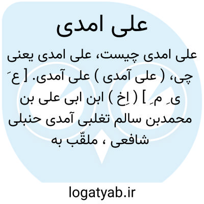 علی آمدی. [ ع َ ی ِ م ِ ]( اِخ ) ابن احمدبن یوسف بن خضر آمدی حنبلی، ملقّب به زین الدین فقیه و عالم به تعبیر خواب بود و در سال 710 هَ. ق. در بغداد وفات کرد. او راست: 1- التبصیر فی التعبیر. 2- تعالیق فی الفقه. ( از معجم المؤلفین ج 7 ص 32 از کشف الظنون ص 247 و الدرر الکامنة ج 3 ص 21 ).