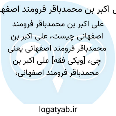 [ویکی فقه] علی اکبر بن محمدباقر فرومند اصفهانی، از ادبا و نویسندگان اصفهان در قرن چهارده هجری بوده است.