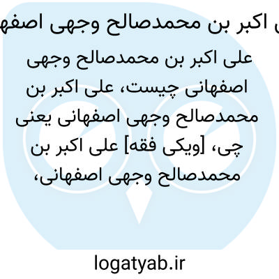 [ویکی فقه] علی اکبر بن محمدصالح وجهی اصفهانی، از شاعران و سخنوران قرن یازدهم هجری در اصفهان بوده است.