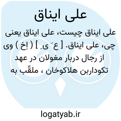 علی ایناق. [ ع َ ی ِ ] ( اِخ ) وی از رجال دربار مغولان در عهد تکوداربن هلاکوخان، ملقّب به سلطان احمد بود. و وقتی سلطان احمد از تغییر عقیده و فساد نیت ارغون خان نسبت به خود آگاه شد، این علی ایناق را که نزد مورخان به «الیناق » مشهور است، نزد ارغون فرستاد ولی شاهزاده ارغون وی را فریفت و با سلطان احمد مخالفت کرد. ( از حبیب السیر چ خیام ج 3 ص 121 ).