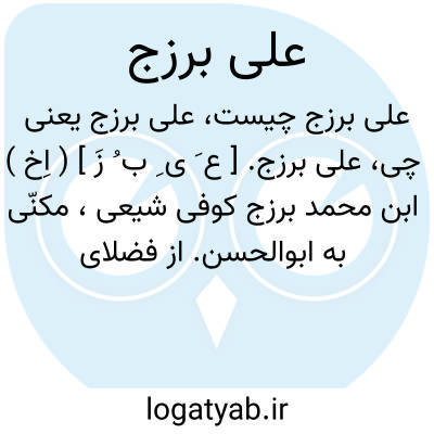 علی برزج. [ ع َ ی ِ ب ُ زَ ] ( اِخ ) ابن محمد برزج کوفی شیعی، مکنّی به ابوالحسن. از فضلای اواخر قرن سوم هجری بود. او راست: 1 - ثواب سورة القدر. 2 - الجنة و النار. 3 - کتاب الاظلة. 4 - کتاب الملاحم. 5- کتاب النوادر. ( از معجم المؤلفین بنقل از ایضاح المکنون بغدادی ج 1 ص 348 و ج 2 ص 269. هدیةالعارفین بغدادی ج 1 ص 674 ).