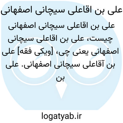 [ویکی فقه] علی بن آقاعلی سیچانی اصفهانی. علی بن آقاعلی سیچانی اصفهانی، از کاتبان و نویسندگان قرن سیزدهم هجری در اصفهان بوده است.