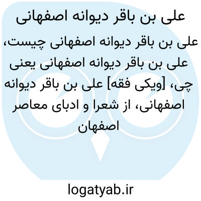 علی اصفهانی متخلّص به «دیوانه» فرزند استاد باقر، شاعر ادیب معاصر در سال ۱۲۷۲ش در اصفهان متولّد گردیده و در آغاز نوجوانی به نانوایی مشغول شد. در جوانی خواندن و نوشتن آموخت و در همان سال ها به سرودن شعر پرداخت. این شعر از اوست: "شمع فراق، جامه هستی ز کف بسوخت ••• این سوز جانگداز، ز پروانه آرزوست""چون مرغ خسته دل، به کناری گرفته جای••• کز دست دوست طعمه بر او دانه آرزوست".بسیاری از اشعارش مدایح و مراثی چهارده معصوم (علیهم السّلام) است. وی در ماه رمضان ۱۴۰۷ق مطابق با ۵ اردیبهشت ۱۳۶۶ش وفات یافته و در قطعه ۹ قبرستان جدید اصفهان (باغ رضوان) مدفون شد.
