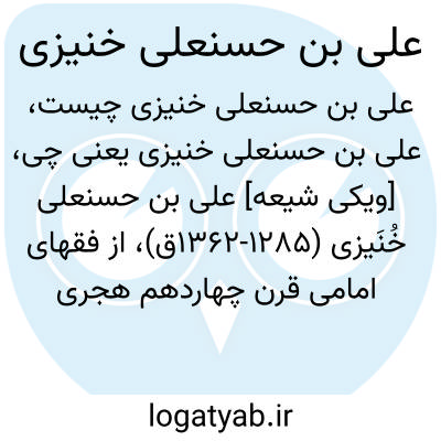 [ویکی شیعه] علی بن حسنعلی خُنَیزی (۱۲۸۵-۱۳۶۲ق)، از فقهای امامی قرن چهاردهم هجری قمری و قاضی شهر قطیف. وی از شاگردان سید محمد کاظم طباطبائی یزدی و شیخ الشریعه اصفهانی بوده است.