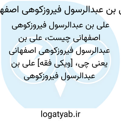 [ویکی فقه] علی بن عبدالرسول فیروزکوهی اصفهانی، از شعرا و ادبای اصفهان در قرن چهارده هجری بوده است.