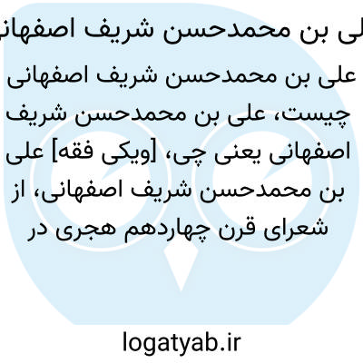 [ویکی فقه] علی بن محمدحسن شریف اصفهانی، از شعرای قرن چهاردهم هجری در اصفهان بوده است.