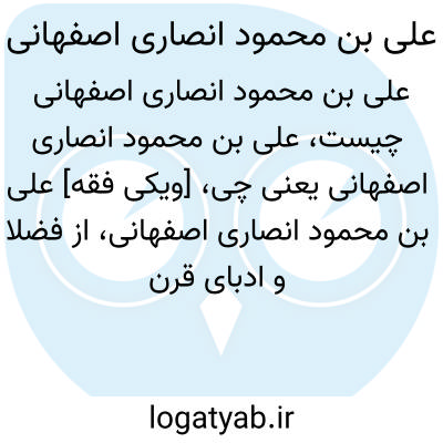 [ویکی فقه] علی بن محمود انصاری اصفهانی، از فضلا و ادبای قرن سیزدهم هجری در اصفهان بوده است.