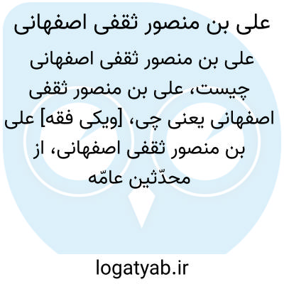 [ویکی فقه] علی بن منصور ثقفی اصفهانی، از محدّثین عامّه قرن ششم و هفتم هجری در اصفهان بوده است.