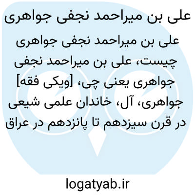 [ویکی فقه] جواهری، آل، خاندان علمی شیعی در قرن سیزدهم تا پانزدهم در عراق است. یکی از شخصیت های این خاندان شیخ علی بن میراحمد نجفی جواهری است.