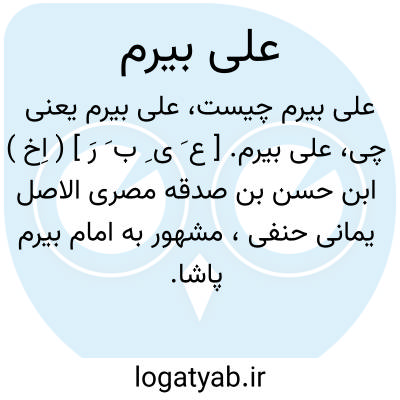 علی بیرم. [ ع َ ی ِ ب َ رَ ] ( اِخ ) ابن حسن بن صدقه مصری الاصل یمانی حنفی، مشهور به امام بیرم پاشا. محدث بود. او راست: ادراک الحقیقه فی تخریج أحادیث الطریقة المحمدیة، که در سال 1050 هَ. ق.از تألیف آن فراغت یافت. ( از معجم المؤلفین بنقل از کشف الظنون ص 1112. هدیةالعارفین بغدادی ج 1 ص 756 ).