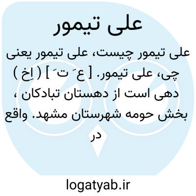 علی تیمور. [ ع َ ت َ ] ( اِخ ) دهی است از دهستان تبادکان، بخش حومه شهرستان مشهد. واقع در 2 هزارگزی شمال خاوری مشهد، و 2 هزارگزی باختر کشف رود. ناحیه ای است جلگه و دارای آب و هوای معتدل، و 176 تن سکنه. آب از رودخانه تأمین می شود. و محصول آن غلات است. اهالی به زراعت و مالداری اشتغال دارند. و راه آن اتومبیل رو است. ( از فرهنگ جغرافیایی ایران ج 9 ).