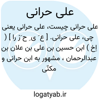 علی حرانی. [ ع َ ی ِ ح َرْ را ] ( اِخ ) ابن حسین بن علی بن علان بن عبدالرحمان، مشهور به ابن حرانی و مکنّی به ابوالحسن. محدث و مورخ و اهل خراسان بود. وی در سال 355 هَ. ق. درگذشت. او راست: تاریخ الجزیرة. ( از معجم المؤلفین ج 7 ص 76 ) ( از هدیةالعارفین ج 1 ص 681 ).