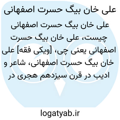 علی خان بیگ اصفهانی متخلّص به «حسرت»، شاعر و ادیب در قرن سیزدهم هجری در اصفهان بوده است. او در جوانی به تحصیل پرداخته و سپس به خدمت شاهزاده محمّدرضا میرزا افسر قاجار رسیده و وزارت او را در حکومت طالش و گیلان داشت. اما از آن مقام معزول و به شیراز رفت. امّا سرانجام از طرف دربار قاجار به طهران فراخوانده شده و راهی آنجا شد. شعر زیر از اوست: "نزدیک تر از جانی و دوری ز بر ما ••• از مایی و از ما به تو بسیار منازل""یکتایی و از توست ظهور همه اشیاء ••• یک شمعی و از پرتو تو نور مشاعل".