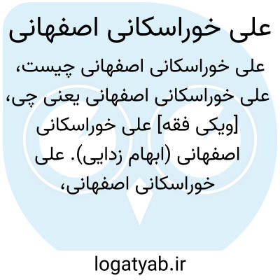 [ویکی فقه] علی خوراسکانی اصفهانی (ابهام زدایی). علی خوراسکانی اصفهانی، ممکن است اشاره به اشخاص و شخصیت های ذیل باشد: • علی بن محمد خوراسکانی اصفهانی، از کاتبان و خوشنویسان قرن یازدهم هجری در اصفهان• علی فقیهی خوراسکانی اصفهانی، از علما و فضلای قرن چهارده هجری در اصفهان