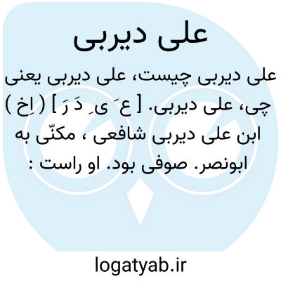 علی دیربی. [ ع َ ی ِ دَ رَ ] ( اِخ ) ابن علی دیربی شافعی، مکنّی به ابونصر. صوفی بود. او راست: مختصرفتح الملک المجید المؤلف لنفع العبید، که در ششم جمادی الاولای سال 1216 هَ. ق. از تألیف آن فراغت یافت. ( از معجم المؤلفین بنقل از فهرس الخدیویة ج 2 ص 228 ).