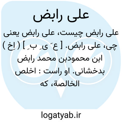 علی رابض. [ ع َ ی ِ ب ِ ] ( اِخ ) ابن محمودبن محمد رابض بدخشانی. او راست: اخلص الخالصة، که ملخصی است از خالصةالحقائق لما فیه من اسالیب الدقائق تألیف عمادالدین محمودبن احمد فارابی. ( از کشف الظنون حاجی خلیفه ص 699 ).