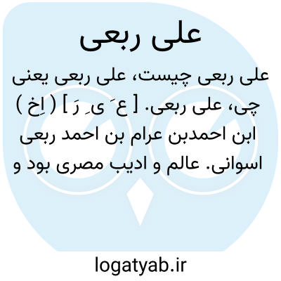 علی ربعی. [ ع َ ی ِ رَ ] ( اِخ ) ابن احمدبن عرام بن احمد ربعی اسوانی. عالم و ادیب مصری بود و در سال 580 هَ. ق. درگذشت. و او را تألیفات بسیاری است. ( ( از معجم المؤلفین بنقل از الاعلام زرکلی ج 5 ص 61. الطالعالسعید ص 198 ).