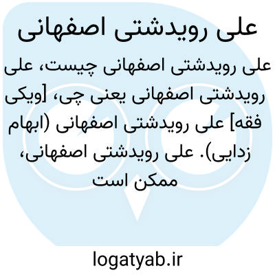[ویکی فقه] علی رویدشتی اصفهانی (ابهام زدایی). علی رویدشتی اصفهانی، ممکن است اشاره به اشخاص و شخصیت های ذیل باشد: • علی قدیری رویدشتی اصفهانی، از علما و فضلای معاصر اصفهان• علی رویدشتی واعظ اصفهانی، از علمای قرن هشتم هجری در اصفهان