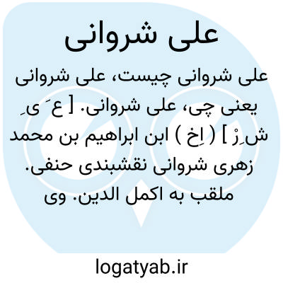 علی شروانی. [ ع َ ی ِ ش ِرْ ] ( اِخ ) ابن ابراهیم بن محمد زهری شروانی نقشبندی حنفی. ملقب به اکمل الدین. وی صوفی بود و در سال 1118 هَ. ق.در مدینه درگذشت. او راست: 1- اقصی المطالب. 2- جامع المناسک. 3- خلاصةالتواریخ. 4- دلیل الزائرین و أنیس المجاورین فی زیارة سیدالمرسلین. 5- مهمات المعارف الواجبة علی العباد فی أحوال المبداء و المعاد. ( از معجم المؤلفین از سلک الدرر ج 3 ص 201. و هدیة العارفین ج 1 ص 764 و ایضاح المکنون ج 1 ص 434 و ج 2 ص 610 ).
