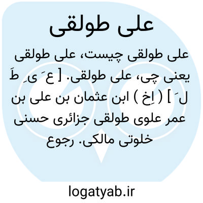 علی طولقی. [ ع َ ی ِ طَ ل َ ] ( اِخ ) ابن عثمان بن علی بن عمر علوی طولقی جزائری حسنی خلوتی مالکی. رجوع به علوی طولقی شود.