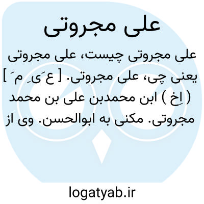 علی مجروتی. [ ع َی ِ م َ ] ( اِخ ) ابن محمدبن علی بن محمد مجروتی. مکنی به ابوالحسن. وی از مردم مغرب بود و در سال 1003 هَ. ق. درگذشت. سلطان منصور او را با هدایایی به همراهی محمدعلی فشتالی کاتب به نزد ملک ترک فرستاد. و وی کتابی درباره این مسافرتش بنام «النفحة المسکیة فی السفرة الترکیة» نگاشته است. ( از معجم المؤلفین ).