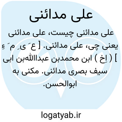 علی مدائنی. [ ع َ ی ِ م َ ءِ ] ( اِخ ) ابن محمدبن عبداﷲبن ابی سیف بصری مدائنی. مکنی به ابوالحسن. مورخ و اخباری و راوی شعر. رجوع به ابوالحسن مدائنی و ماخذ ذیل شود: معجم المؤلفین ج 7 ص 211. عیون التواریخ ابن شاکر ص 79. الوافی صفدی ج 12 ص 169. سیرالنبلاء ذهبی ج 7 ص 230. الانساب سمعانی ص 515.تاریخ بغداد خطیب بغدادی ج 12 ص 54. الفهرست ابن الندیم ص 101. تاریخ طبری ج 11 ص 9. الفهرست طوسی ص 95. معجم الادباء یاقوت ج 14 ص 124. کامل التواریخ ابن اثیر ج 6 ص 175. النجوم الزاهره ابن تغری بردی ج 2 ص 259. شذرات الذهب ابن عماد ج 2 ص 54. مرآت الجنان یافعی ج 2 ص 83. لسان المیزان ابن حجر ج 4 ص 253. مختصر دول الاسلام ج 1 ص 105. کشف الظنون حاجی خلیفه ص 1420.