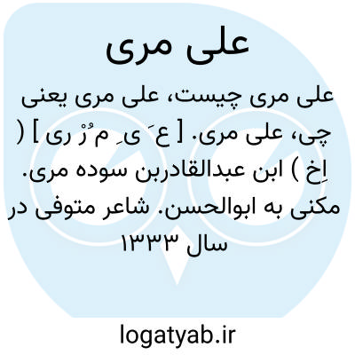 علی مری. [ ع َ ی ِ م ُرْ ری ] ( اِخ ) ابن عبدالقادربن سوده مری. مکنی به ابوالحسن. شاعر متوفی در سال 1333 هَ. ق. او را دیوان شعری است. ( از معجم المؤلفین ).