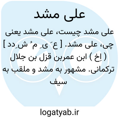 علی مشد. [ ع َ ی ِ م ُ ش ِدد ] ( اِخ ) ابن عمربن قزل بن جلال ترکمانی. مشهور به مشد و ملقب به سیف الدین و مکنی به ابوالحسن. شاعر و از امراء بود. وی در سال 602 هَ. ق. در مصر متولد شد و در روز عاشورای سال 656 هَ. ق. در دمشق درگذشت. او را دیوان شعری است. ( از معجم المؤلفین ). صاحب معجم المؤلفین به مآخذ ذیل نیز اشاره کرده است: الوافی صفدی ج 12 ص 128. البدایه ابن کثیر ج 13 ص 197. النجوم الزاهره ابن تغری بردی ج 7 ص 64. شذرات الذهب ابن عماد ج 5ص 280. حسن المحاضره سیوطی ج 1 ص 327. ایضاح المکنون بغدادی ج 491. هدیة العارفین بغدادی ج 1 ص 710.