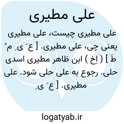 علی مطیری. [ ع َ ی ِ م ُ طَ ] ( اِخ ) ابن ظاهر مطیری اسدی حلی. رجوع به علی حلی شود. علی مطیری. [ ع َ ی ِ م ُ طَ ] ( اِخ ) ابن محمدبن ابی بکر مطیری. فقیه و از علمای بنی مطیر بود. وی در سال 1084 هَ.ق. در زیدیة از شهرهای یمن درگذشت. او راست: مختصر التلخیص. ( از الاعلام زرکلی از خلاصةالاثر ج 3 ص 193 ).