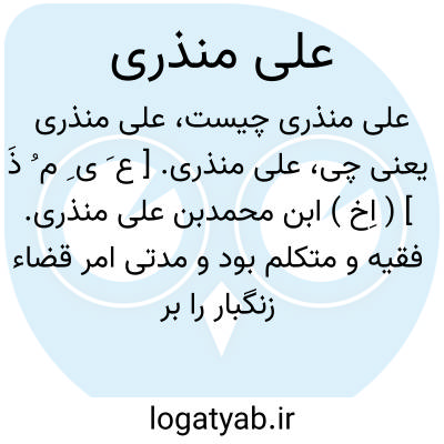علی منذری. [ ع َ ی ِ م ُ ذَ ] ( اِخ ) ابن محمدبن علی منذری. فقیه و متکلم بود و مدتی امر قضاء زنگبار را بر عهده داشت و در سال 1344 هَ. ق. درگذشت. او راست: 1- اختصار الادیان. 2- الصراط المستقیم. 3- نورالتوحید. ( از معجم المؤلفین ).