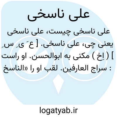 لغت نامه دهخدا علی ناسخی. [ ع َ ی ِ س ِ ] ( اِخ ) مکنی به ابوالحسن. او راست: سراج العارفین. لقب او را «الناسخ » نیز گفته اند. ( از کشف الظنون حاجی خلیفه ص 983 ).
