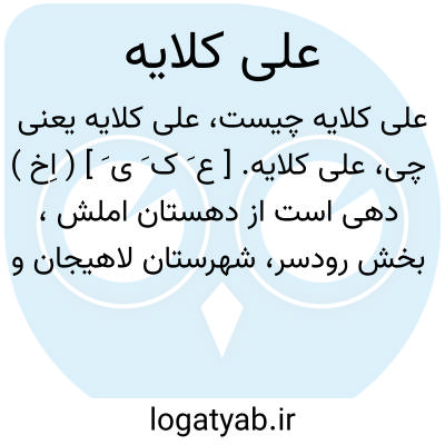 علی کلایه. [ ع َ ک َ ی َ ] ( اِخ ) دهی است از دهستان املش، بخش رودسر، شهرستان لاهیجان و سکنه آن 240 تن است. آب آن از رودخانه پل رود تأمین می شود. و محصول آن برنج است. ( از فرهنگ جغرافیایی ایران ج 2 ).