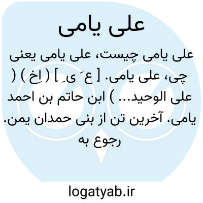 علی یامی. [ ع َ ی ِ ] ( اِخ ) ( علی الوحید... ) ابن حاتم بن احمد یامی. آخرین تن از بنی حمدان یمن. رجوع به علی حمدانی ( ابن حاتم... ) شود.