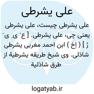 علی یشرطی. [ ع َ ی ِ ی َ رُ ] ( اِخ ) ابن احمد مغربی یشرطی شاذلی. وی شیخ طریقه یشرطیة از طرق شاذلیة بود. در سال 1211 هَ. ق. در بنزرت متولد شد و در سال 1266 هَ.ق. در عکا ( در فلسطین ) مسکن گزید و به واسطه انتشارطریقت او در شام، حکومت عثمانی از ترس برپا شدن فتنه، او را مدت سه سال به قبرس تبعید کرد. و پس از بازگشت نیز به تبلیغ برای طریقت خویش پرداخت و مدتی نیزدر منزل امیر عبدالقادر تحت نظر بود تا در سال 1316هَ. ق. درگذشت. یشرطی منسوب به قبیله ای از قبایل مغرب است که گویند حسنی الاصل است. ( از الاعلام زرکلی ).