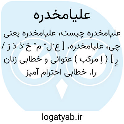 لغت نامه دهخدا علیامخدره. [ ع ُل ْ م ُ خ َدْ دَ رَ / رِ ] ( اِ مرکب ) عنوانی و خطابی زنان را. خطابی احترام آمیز زنی را.