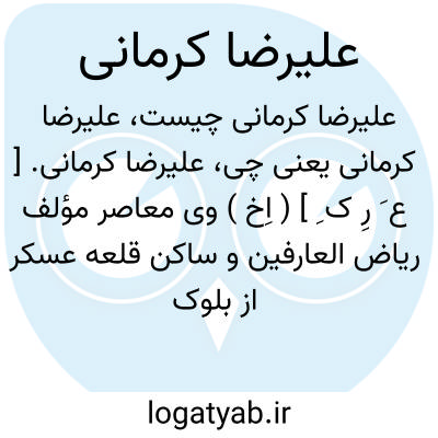 علیرضا کرمانی. [ ع َ رِ ک ِ ] ( اِخ ) وی معاصر مؤلف ریاض العارفین و ساکن قلعه عسکر از بلوک کرمان و از مریدان رونق علیشاه بوده است. او را اشعاری است. ( از الذریعه آقابزرگ طهرانی ج 9 ص 758 بنقل از ریاض العارفین ص 469 ).